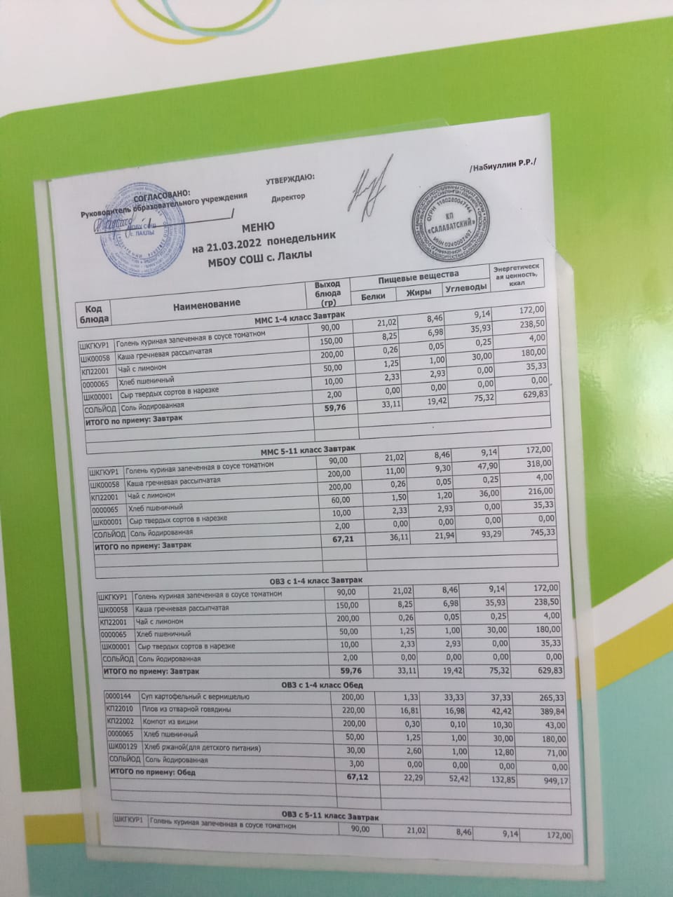 (Контрольное блюдо)