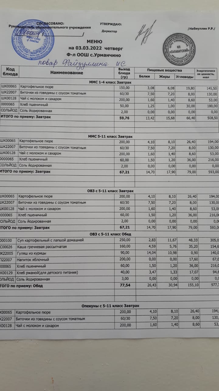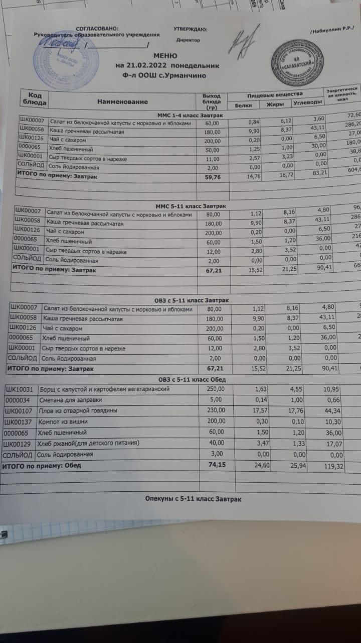 (Контрольное блюдо овз)