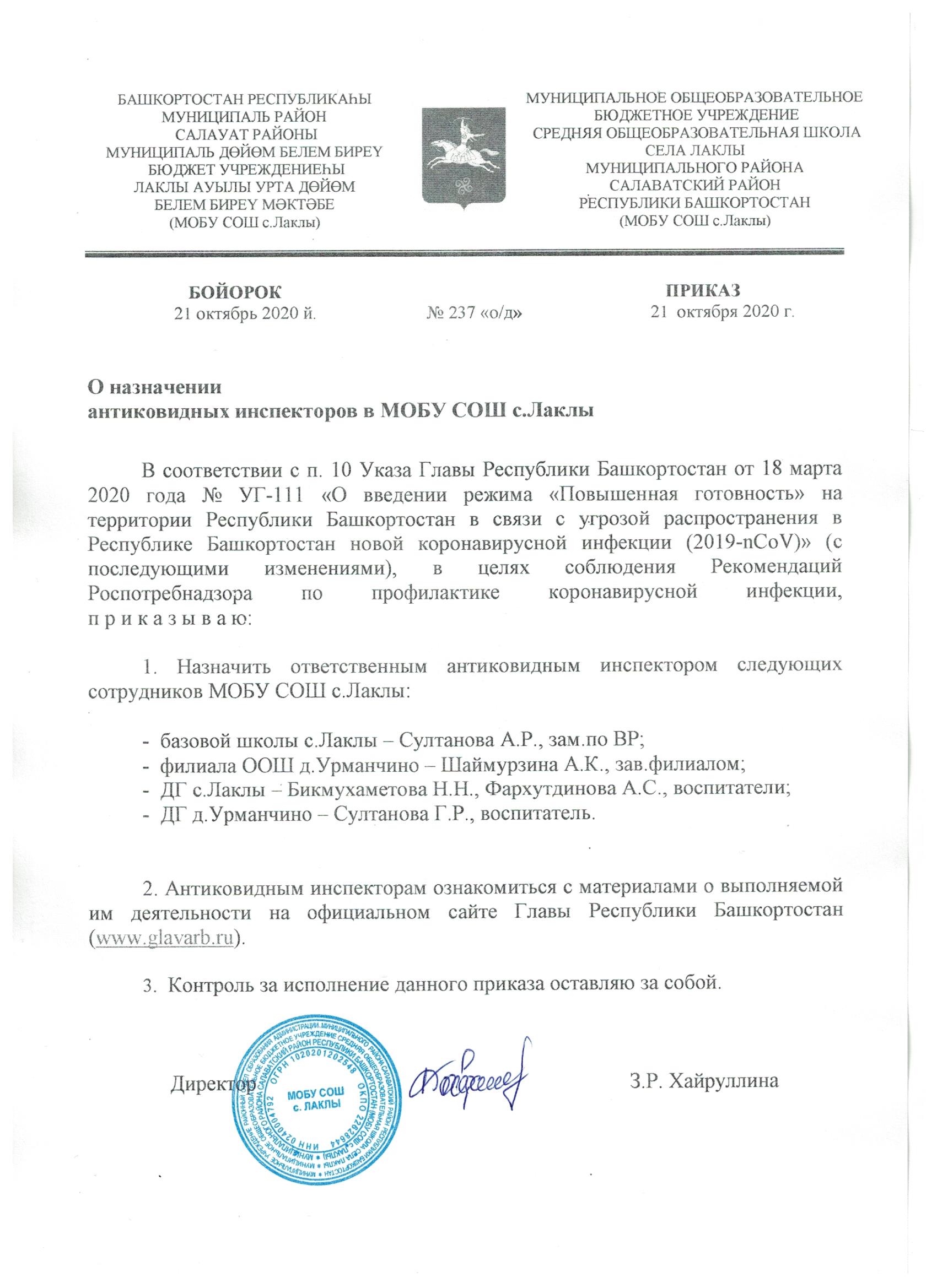 http://lakli.ucoz.ru/dok3/vladik1.jpeg">Приказ № 130 о/д от 20 августа 2020г. О Подготовке к новому учебному году в условиях новой коронавирусной инфекции
